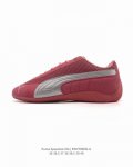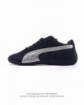 PUMA Speedcat Og. This low-top, German-inspired racing shoe from the PUMA Speed Racing series features a retro, versatile, and casual sportswear. Inspired by the fire-resistant racing shoes worn by racers in the 1980s and 1990s, its lines mimic the streamlined silhouette of a race car, embodying aerodynamic principles. Its simple, sleek design seamlessly blends with the Formstrip logo throughout, creating a visually rich and harmonious look. The return of the Speedcat Og naturally retains its narrow silhouette and thin sole. While other brands have been increasingly adopting thicker soles in recent years, the Speedcat bucks the trend, offering a nearly soleless feel for a refreshing visual experience. The upper remains constructed of soft, breathable leather, and the extensive, almost fully enclosed construction enhances its retro aesthetic. The colorway also brings back the original black and red, a nod to the iconic F1 team uniforms. I believe it's the striking red color that immediately catches your eye. It instantly brightens up your look and makes you stand out in the sneaker-centric Ootd market. The black color, on the other hand, is a low-key all-purpose option, showcasing a trendy personality without overwhelming the crowd, making it a great choice for those who love minimalist styles.