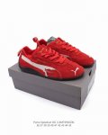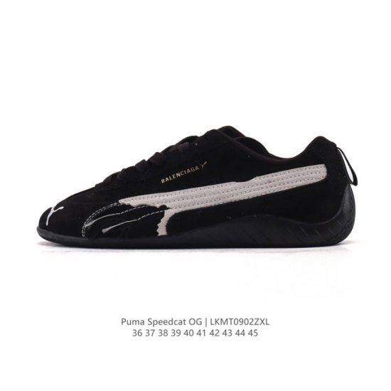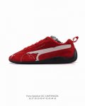 PUMA Speedcat Og. This low-top, German-inspired, retro, versatile racing shoe from the PUMA Speedcat series features a versatile, casual style. Inspired by the fire-resistant racing shoes worn by racers in the 1980s and 1990s, its lines mimic the streamlined silhouette of a race car, embodying aerodynamic principles. Its simple, streamlined design seamlessly blends with the Formstrip logo throughout, creating a visually rich and harmonious look. The return of the Speedcat Og naturally retains its narrow silhouette and thin sole. While other brands have been increasingly adopting thicker soles in recent years, the Speedcat bucks the trend, offering a nearly soleless feel for a refreshing visual experience. The upper remains constructed of soft, breathable leather, and the extensive, almost fully enclosed design enhances its retro aesthetic. The colorway also brings back the original black and red, a nod to the iconic F1 team uniforms. I believe it's the striking red color that immediately catches your eye. It instantly brightens up your look and makes you stand out in the sneaker-centric Ootd market. The black color, on the other hand, is a low-key all-purpose option, showcasing a trendy personality without overwhelming the crowd, making it a great choice for those who love minimalist styles.