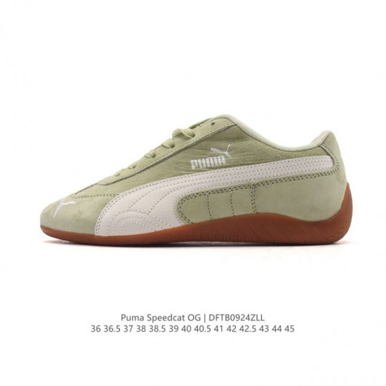 The Puma Speedcat Og is a low-top, German-inspired, retro, and versatile racing shoe from the Puma Speedcat series. This shoe is inspired by the fire-resistant racing shoes worn by racers in the 1980s and 1990s. Its lines mimic the streamlined silhouette of a race car, embodying aerodynamic principles. Its simple, streamlined design seamlessly blends with the Formstrip logo throughout, creating a visually rich and harmonious look. The return of the Speedcat Og naturally retains its narrow silhouette and thin sole. While other brands have been adopting increasingly thicker soles in recent years, the Speedcat bucks the trend, creating a nearly soleless look for a refreshing visual experience. The upper remains constructed of soft, breathable leather, and the extensive, almost fully covered design enhances its retro aesthetic. The colorway also brings back the original black and red, paying homage to the iconic F1 team uniforms. I believe it's the striking red color that immediately catches your eye. It instantly brightens up your look and makes you stand out in the sneaker-centric Ootd market. The black color, on the other hand, is a low-key all-purpose option, showcasing a trendy personality without overwhelming the crowd, making it a great choice for those who love minimalist styles.