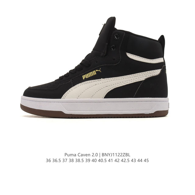 Company Grade Puma Caven 2.0 Unisex High-Top Sneakers. The Caven 2.0 is a subtle twist on the classic 1980s basketball silhouette, with a truly classic look. The upper is made from at least 20% recycled materials, and the sole from at least 10%, a step towards a brighter future. A synthetic leather upper is paired with soft leather eyelets and toe caps. The upper features perforated details. A layered midsole design is combined with a thick, visible texture. A Softfoam+ insole provides superior cushioning, along with a layered rubber midsole, rubber outsole, Puma form factor on one side, and Puma branding details on the upper, heel, and tongue label. Type: Men's/Women's Shoes Sizes: 36-45 (including half sizes) Code: Bnyj1122Zbl