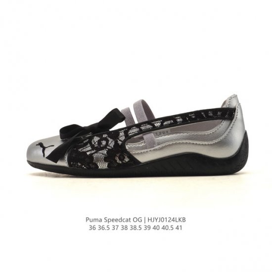 Puma Speedcat Ballet Mary Jane Shoes Women's Sports Casual Shoes. Puma Women's Speedcat Ls Park Chae-young's Racing Shoes Suede Casual Shoes. Puma launches the new Speedcat Ballet shoe, fusing the classic Mary Jane silhouette with the iconic Speedcat thin-soled design, continuing to lead a new chapter in the thin-soled shoe trend. Based on the Mary Jane shoe, the Puma Speedcat Ballet features an open forefoot design with an elastic buckle. Its smooth silhouette is inspired by ballet flats, elegant yet dynamic. The initial two colorways include white and silver, with the silver version cleverly incorporating metallic elements from F1 racing cars, presenting a unique mixed-style look. Product Code: 408197 01 Sizes: 36-41 (including half sizes) Code: Hjyj0124Lkb