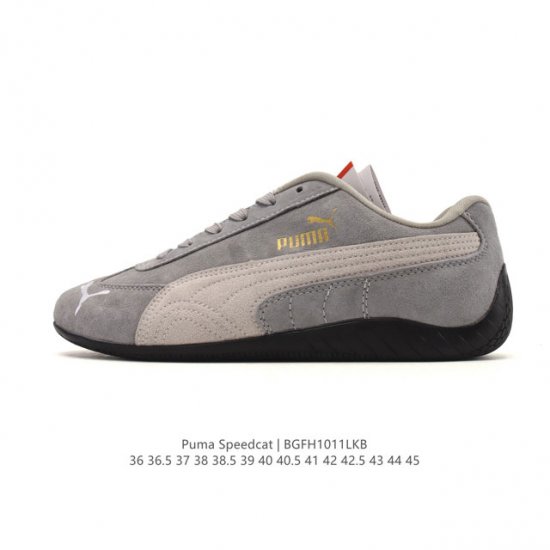Puma Speedcat Og is a low-top, retro-inspired, versatile casual racing shoe from the Puma Speedcat series. Inspired by the fire-resistant racing shoes worn by race car drivers in the 80s and 90s, the shoe's lines mimic the streamlined silhouette of a race car, embodying aerodynamic principles. The simple and sleek appearance blends perfectly with the Formstrip logo, creating a visually rich and harmonious design. The biggest highlight of this Speedcat Og release is the retention of its narrow silhouette and thin sole. While other brands have been making their soles thicker in recent years, Speedcat goes against the grain, offering a refreshing visual experience with an almost sole-less effect. The upper is still crafted from high-quality, breathable, and soft leather, with extensive use of almost full coverage, further enhancing its retro feel. The colorway brings back the original black and red, paying homage to the iconic F1 racing team uniforms. The striking bright red is sure to catch everyone's eye at first glance, instantly brightening up any outfit and making it stand out in Ootd's sneaker-centric style. The black version, on the other hand, is a low-key all-rounder, showcasing a trendy personality without being overpowering, making it a top choice for those who love minimalist fashion. Product Code: 406329 Sizes: 36-45 (including half sizes) Code: Bgfh1011Lkb