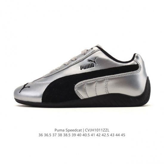 Puma Speedcat Og is a low-top, retro-inspired, versatile casual racing shoe from the Puma Speedcat series. Inspired by the fireproof racing shoes worn by race car drivers in the 80s and 90s, the shoe's lines mimic the streamlined silhouette of a race car, embodying aerodynamic principles. The simple and sleek appearance blends perfectly with the Formstrip logo, creating a visually rich and harmonious design. The biggest highlight of this Speedcat Og release is the retention of its narrow silhouette and thin sole. While other brands have been making their soles thicker in recent years, Speedcat goes against the grain, offering a refreshing visual experience with an almost sole-less effect. The upper is still crafted from high-quality, breathable, and soft leather, with extensive use of almost full coverage, further enhancing its retro feel. The colorway brings back the original black and red, paying homage to the iconic F1 racing team uniforms. The striking bright red is sure to catch everyone's eye at first glance, instantly brightening up any outfit and making it stand out in Ootd's sneaker-centric style. The black version, on the other hand, is a low-key all-rounder, showcasing a trendy personality without being overpowering, making it a top choice for those who love minimalist fashion. Product Code: 403689 Sizes: 36-45 (including half sizes) Code: Cvjh1011Zzl