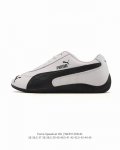 Puma Speedcat Og is a low-top, retro-inspired, versatile casual racing shoe from the Puma Speedcat series. Inspired by the fire-resistant racing shoes worn by race car drivers in the 80s and 90s, the shoe's lines mimic the streamlined silhouette of a race car, embodying aerodynamic principles. Its simple and streamlined appearance blends perfectly with the Formstrip logo, creating a visually rich and harmonious design. The biggest highlights of this Speedcat Og release are the retention of its narrow silhouette and thin sole. While other brands have been making their soles thicker in recent years, Speedcat goes against the grain, offering a refreshing visual experience with an almost sole- less effect. The upper is still made of high-quality, breathable, and soft leather, with extensive use of almost full coverage, further enhancing its retro feel. The colorway brings back the original black and red, paying homage to the iconic F1 racing team uniforms. The striking bright red is sure to catch everyone's eye at first glance, instantly brightening up any outfit and making it stand out in Ootd's sneaker-centric style. The black version, on the other hand, is a low-key all-rounder, showcasing a trendy personality without being overpowering, making it a top choice for those who love minimalist fashion. DDD Product Code: 405835 DDD Sizes: 36-45 (including half sizes) DDD Code: Wexy 3Lkl DDD