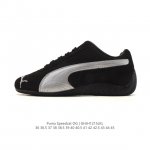 Puma Speedcat Og is a low-top, retro-inspired, versatile casual racing shoe from Puma's Speedcat series. Inspired by the fire-resistant racing shoes worn by race car drivers in the 80s and 90s, the shoe's lines mimic the streamlined silhouette of a race car, embodying aerodynamic principles. Its simple and sleek appearance blends perfectly with the Formstrip logo, creating a visually rich and harmonious design. The biggest highlight of this Speedcat Og release is the retention of its narrow silhouette and thin sole. While other brands have been making their soles thicker in recent years, Speedcat goes against the grain, offering a refreshing visual experience with an almost sole-less effect. The upper is still crafted from high-quality, breathable, and soft leather, with extensive use of almost full coverage, further enhancing its retro feel. The colorway brings back the original black and red, paying homage to the iconic F1 racing team uniforms. The striking bright red is sure to catch everyone's eye at first glance, instantly brightening up any outfit and making it stand out in Ootd's sneaker-centric style. The black version, on the other hand, is a low-key all-rounder, showcasing a trendy personality without being overpowering, making it a top choice for those who love minimalist fashion. DDD Product Code: 398846 01 DDD Sizes: 36-45 (including half sizes) DDD Code: Ghhj1215Lkl DDD