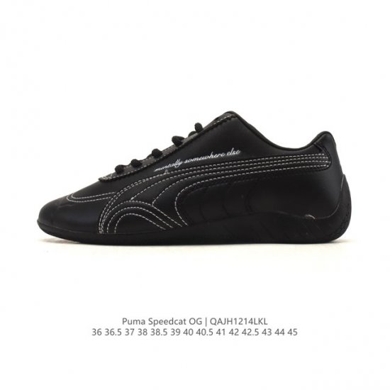 Puma Speedcat Og is a low-top, retro-inspired, versatile casual racing shoe from the Puma Speedcat series. Inspired by the fireproof racing shoes worn by race car drivers in the 80s and 90s, the shoe's lines mimic the streamlined shape of a race car, embodying aerodynamic principles. The simple and smooth appearance blends perfectly with the Formstrip logo, creating a visually rich and harmonious design. The biggest highlights of this Speedcat Og release are the retention of its narrow silhouette and thin sole. While other brands have been making their soles thicker in recent years, Speedcat goes against the grain, offering a refreshing visual experience with an almost sole-less effect. The upper is still made of high-quality, breathable, and soft leather, with extensive use of almost full coverage, further enhancing its retro feel. The colorway brings back the original black and red, paying homage to the iconic F1 racing team uniforms. The striking bright red is sure to catch everyone's eye at first glance, instantly brightening up any outfit and making it stand out in Ootd's sneaker-centric style . The black version, on the other hand, is a low-key all-rounder, showcasing a trendy personality without being overpowering, making it a top choice for those who love minimalist fashion. DDD Product Code: 3 0846 DDD Sizes: 36-45 (including half sizes) DDD Code: Qajh1214Lkl DDD