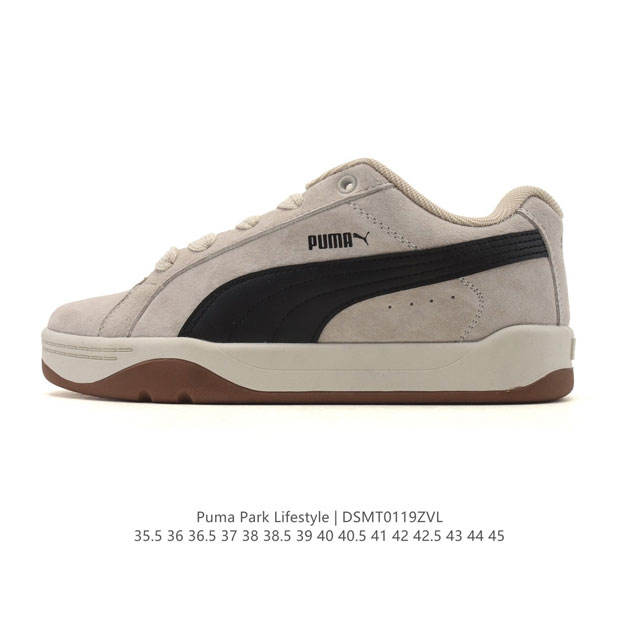 Puma unisex sneakers, developed from the original last and paper pattern, featuring an eco-friendly fiber leather upper with suede trim and a durable rubber outsole. Rihanna's signature low-top loafers are so stylish! Puma Park Lifestyle Og Sneaker, a low-top retro-style casual sneaker from the Park Lifestyle series. Type: Men's/Women's Shoes Product Number: 400707 Sizes: 35.5-45 (including half sizes) Code: Dsmt0119Zvl