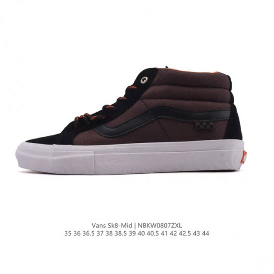 Vans Classic Series Sk8-Mid mid-top canvas patchwork shoes, casual sports vulcanized sneakers, couple shoes, fashionable retro men's and women's shoes.